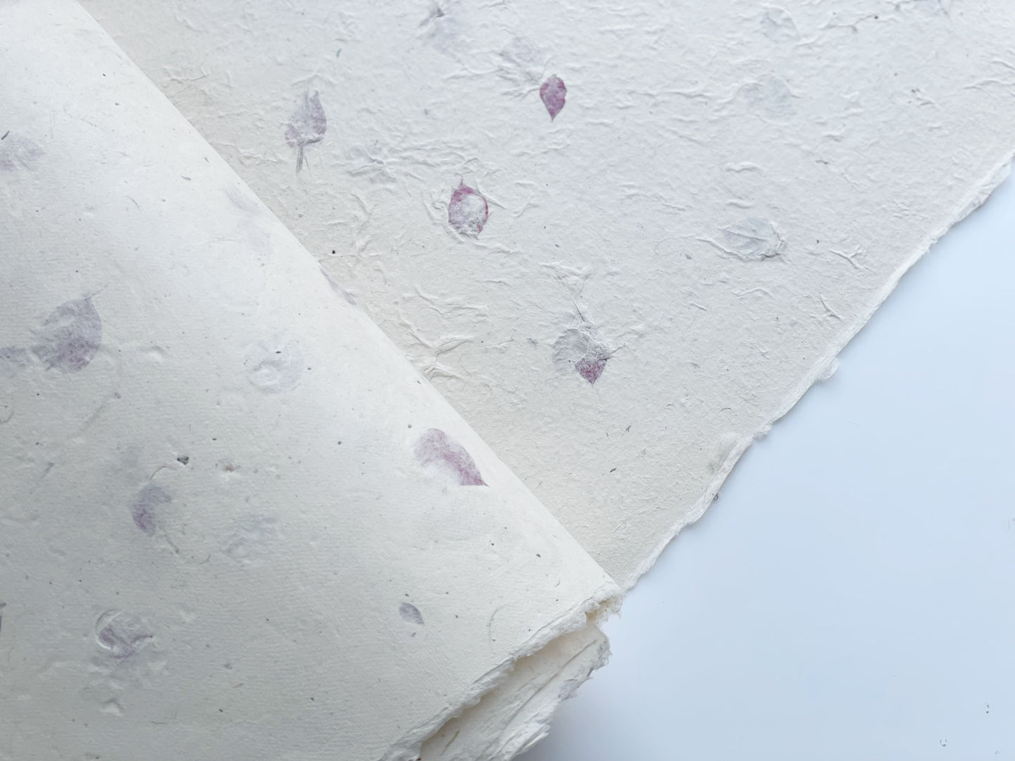 This beautiful handmade paper features pressed bougainvillea petals against natural lokta paper. The entire sheet of paper is filled pressed petals that have been randomly scattered on the paper. If you are wrapping a gift for mom for Mother’s Day or perhaps her birthday gift, she is going to love it!