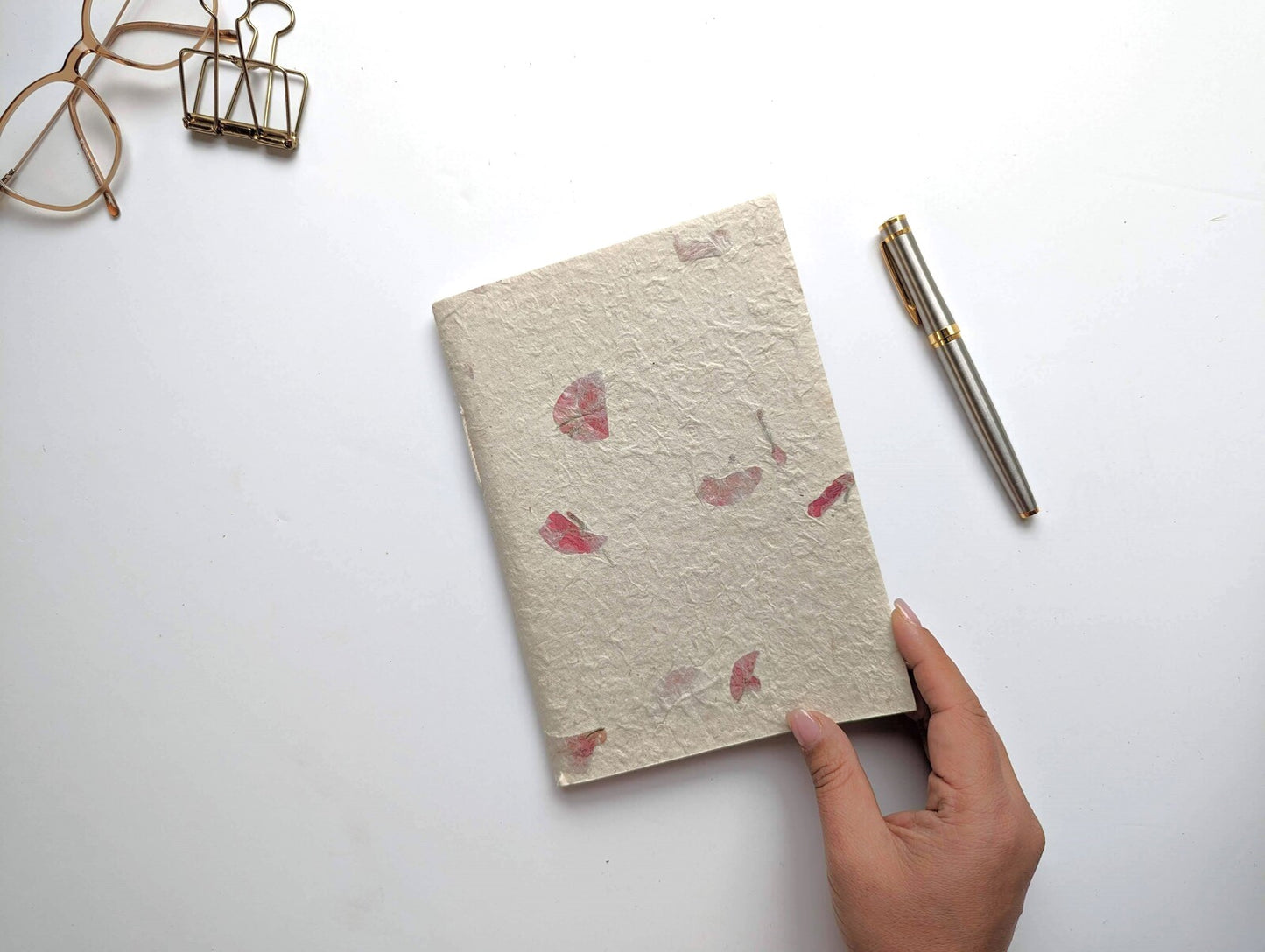 The notebook features handmade Lokta paper hence the pages feel soft & textured and they have been cut/calendared and sewn by hand by artisans in Nepal.